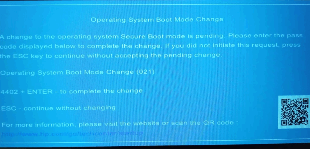 魔女は英語が分からないので、最初にこの画面をスルーして画面を立ち上げ、セキュアブートを無効にしたつもりでいて、エラー地獄に陥りました。HP製のPCをお使いの方はくれぐれもご注意下さい!