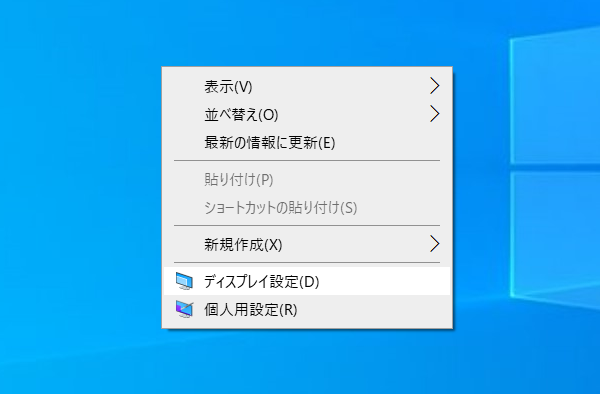 デスクトップで右クリック→ディスプレイ設定