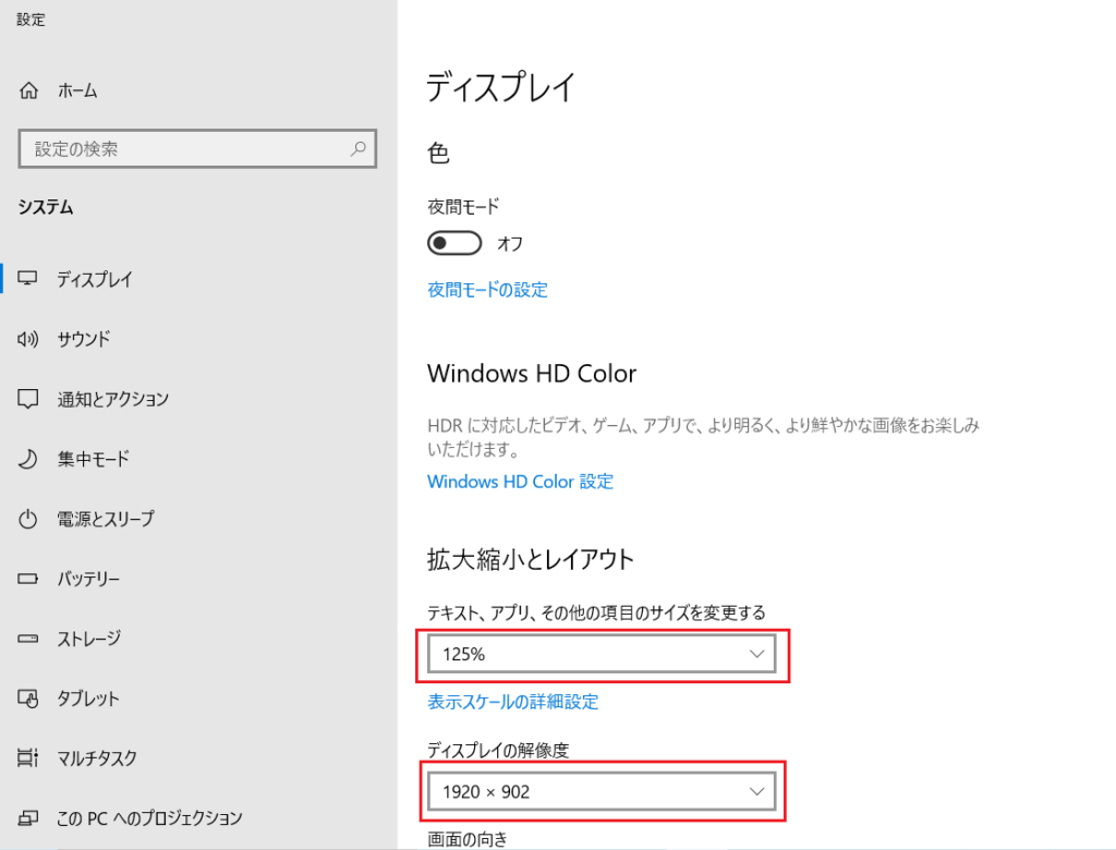 →拡大縮小のレイアウトを125%→ディスプレイサイズ1920*920(Victus16の場合)。