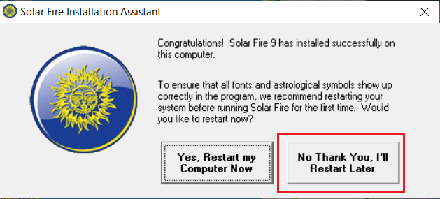 すぐにポップアップが表示されるので、、『No Thank You,I’ll Restart Later(あとで再起動)』を選びます。